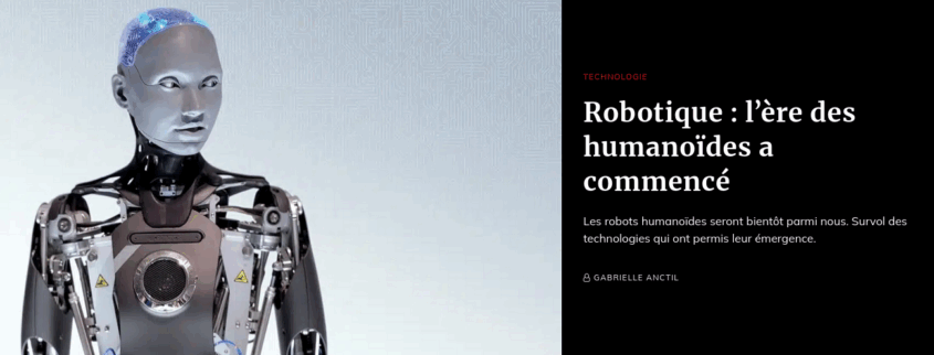 L’ère des humanoïdes a commencé Journalisme, Journaliste Dossier à propos des robots humanoïdes dans le magazine Québec Science de décembre 2025. L’ère des humanoïdes a commencé Comment améliorer la collaboration entre les robots et les humains?